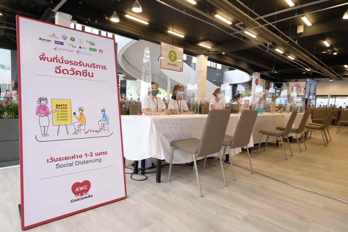 Mrs. Wallapa Traisorat, CEO and President of Asset World Corp Public Company Limited, states “While the COVID-19 pandemic is still affecting the public health and the nation’s economy, AWC is prepared to provide full support to the public sector and the Thai Chamber of Commerce by opening Asiatique The Riverfront Destination, a lifestyle destination by the Chao Phraya River and one of Thailand’s landmarks, as a non-hospital COVID-19 vaccination unit to join forces with major alliances and support the Thai population in overcoming the pandemic together.”